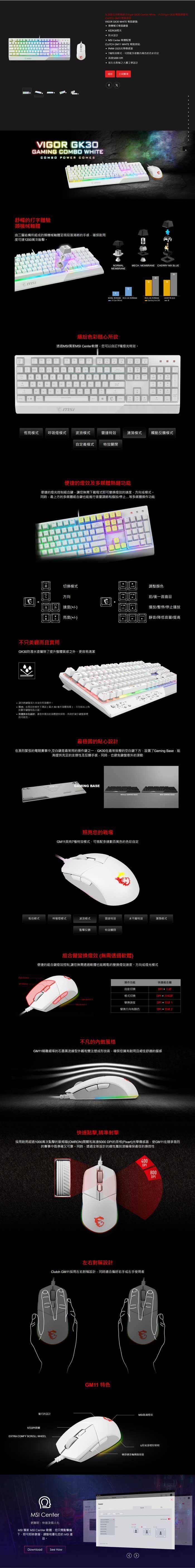 【MSI 微星】VIGOR GK30 COMBO WHITE電競鍵盤滑鼠組
