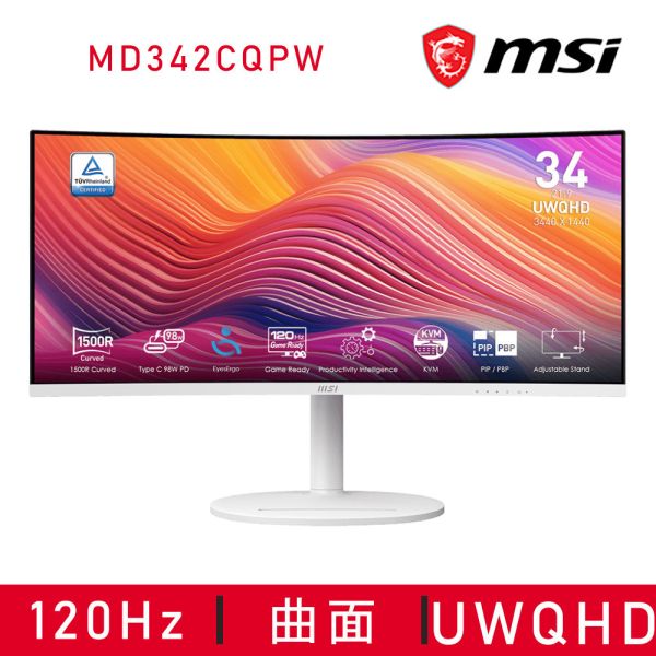 【MSI 微星】Modern MD342CQPW(2H1P1C/1ms/VA曲面/1500R/120Hz/含喇叭/白色)