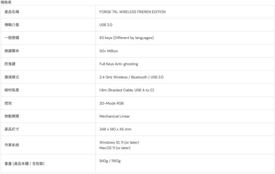 - 本賣場包含參項商品:MSI FORGE TKL WIRELESS FRIEREN EDITION 微星電競鍵盤.MSI VERSA WIRELESS FRIEREN EDITION 微星無線電競滑鼠.MSI AGILITY GD20 FRIEREN EDITION 微星電競鼠墊。
