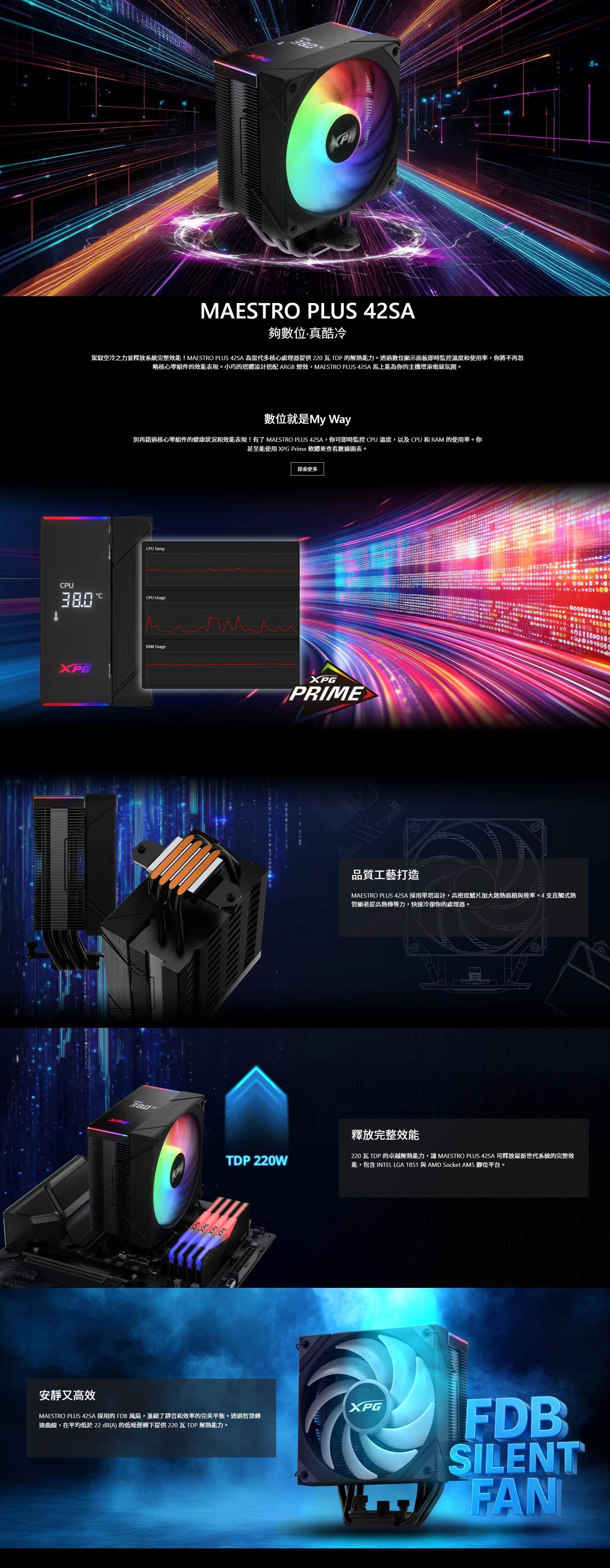 【XPG 威剛】MAESTRO PLUS 42SA (4導管/數位顯示面版/全黑化/12cm風扇*1/高156mm),工作狂購物網