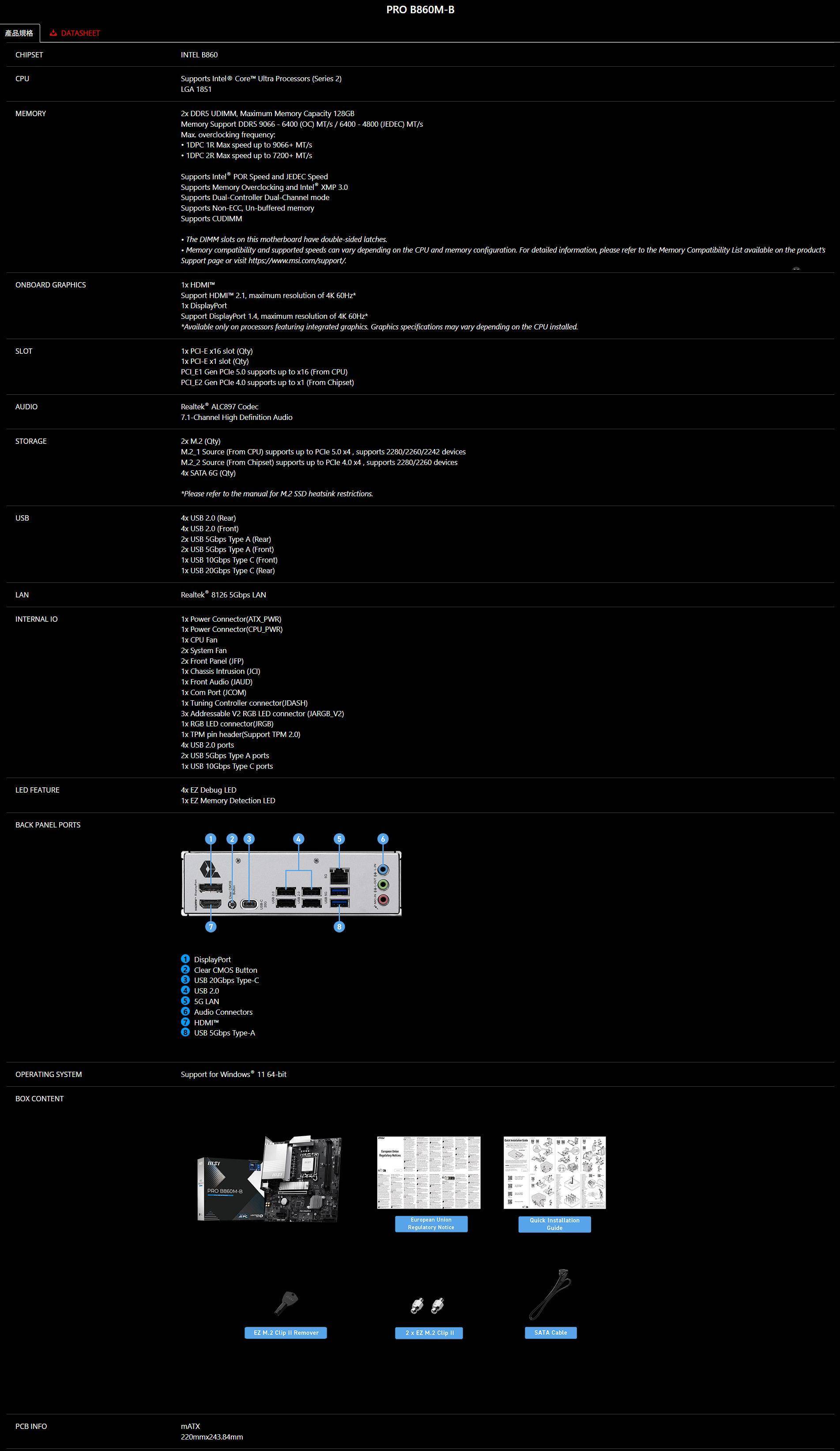 商品詳情 【MSI 微星】PRO B860M-B WIFI (M-ATX/1H1P/Realtek 5Gb/Wi-Fi 7+BT 5.4/2XDIMM/註冊四年保) TWD $3,999 TWD $3,690
