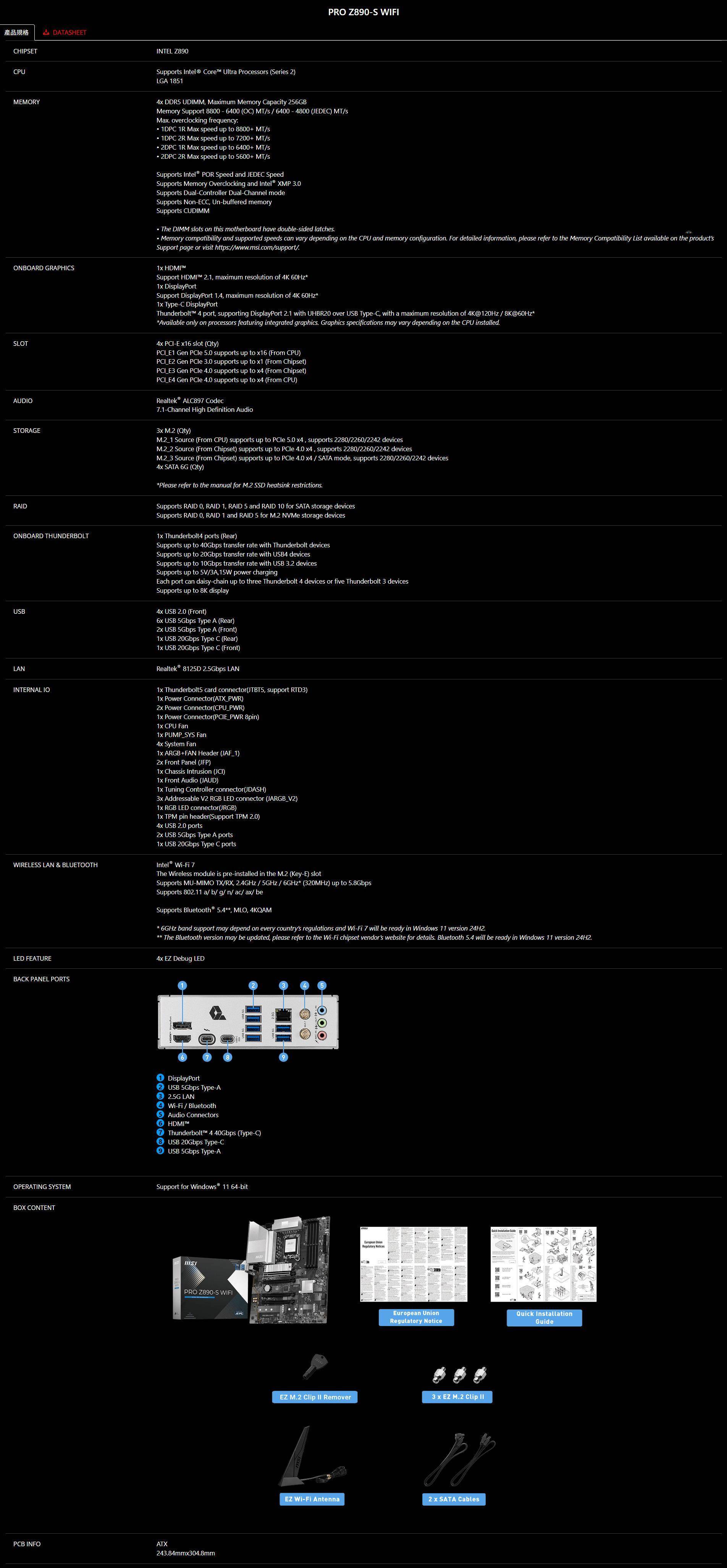 【MSI 微星】PRO Z890-S WIFI (ATX/1H1P/Realtek 2.5G/Wi-Fi 7+BT 5.4/註冊四年保),工作狂購物網