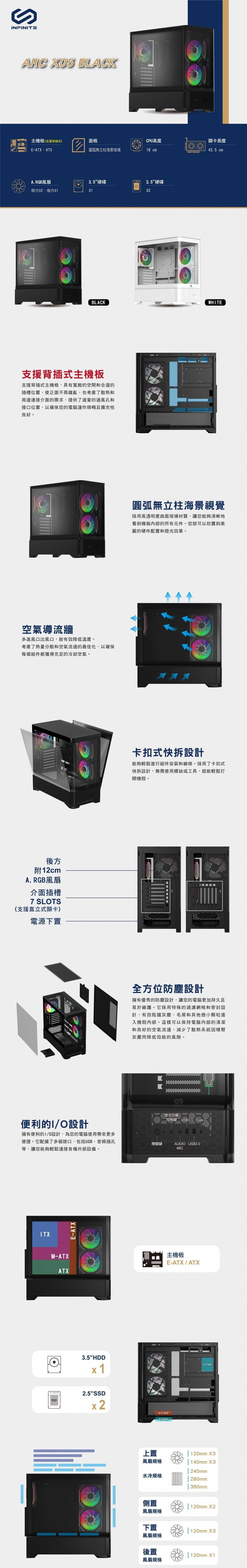 【Mavoly 松聖】INFINITE ARC X05 電腦機殼 (E-ATX/內建風扇側2後1/顯卡425mm/塔散180mm),工作狂購物網