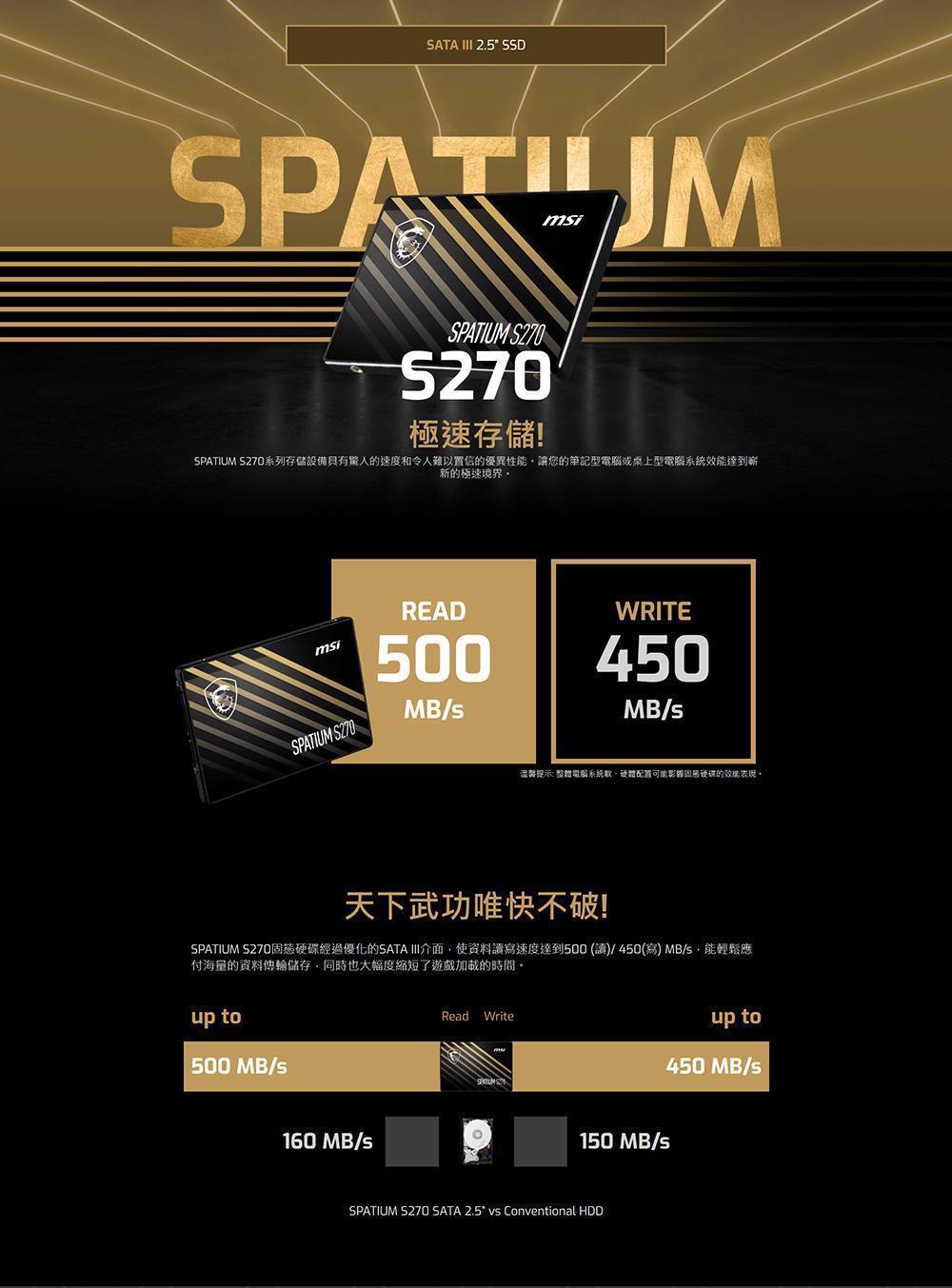【MSI 微星】SPATIUM S270 480GB SSD硬碟(2.5吋/SATA/讀:500M/寫:450M/TLC/五年保),工作狂購物網